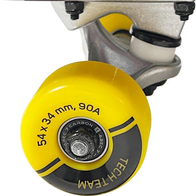 - Скоростные подшипники и качественные колёса. Подшипники ABEC 7 carbon делают ход плавным, а полиуретановые колёса 54×34 мм (жёсткость 90A) гарантируют отличное сцепление с поверхностью.