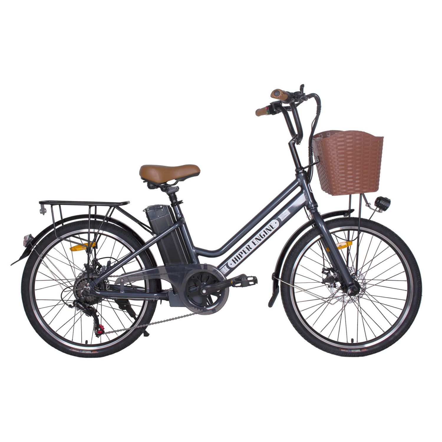 - Оборудован мотором 350Вт36В и литий-ионной батареей 375 Втч 10,4 Ач