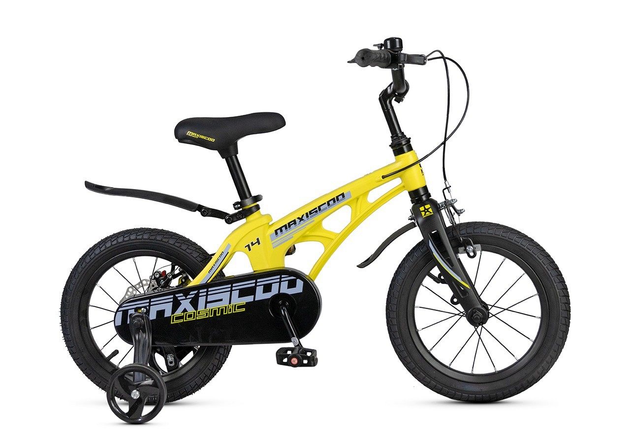 Основой велосипеда является лёгкая и прочная магниевая рама, которая гарантирует отличную маневренность и устойчивость. Вилка, выполненная из того же материала, дополнительно снижает вес конструкции, что позволяет детям легко управлять велосипедом. С диаметром колёс в 14 дюймов, Maxiscoo Cosmic идеально подходит для маленьких гонщиков, создавая комфортные условия для катания.