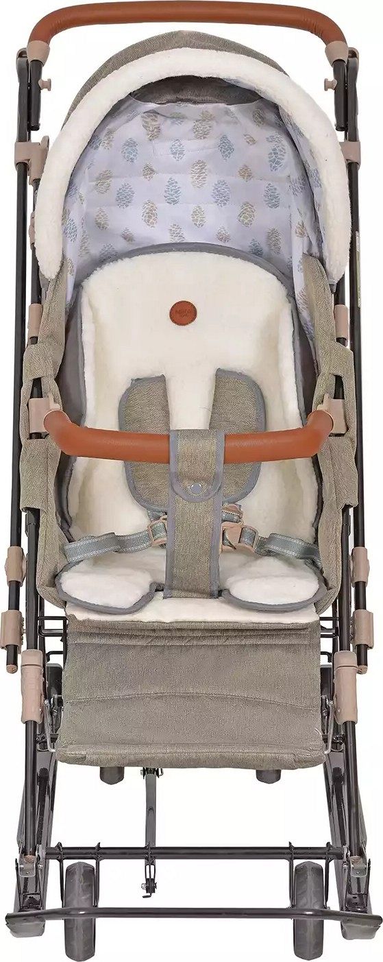 Для дополнительного комфорта предусмотрена подножка для ног с регулируемым углом наклона и перекидная ручка с оплёткой из экокожи. Новый крой чехла с круговой молнией и окантовкой мехом, а также светоотражающий кант создают стильный внешний вид и безопасность в тёмное время суток. Широкое посадочное место и бампер, обтянутый экокожей, создают уютное пространство для ребёнка.