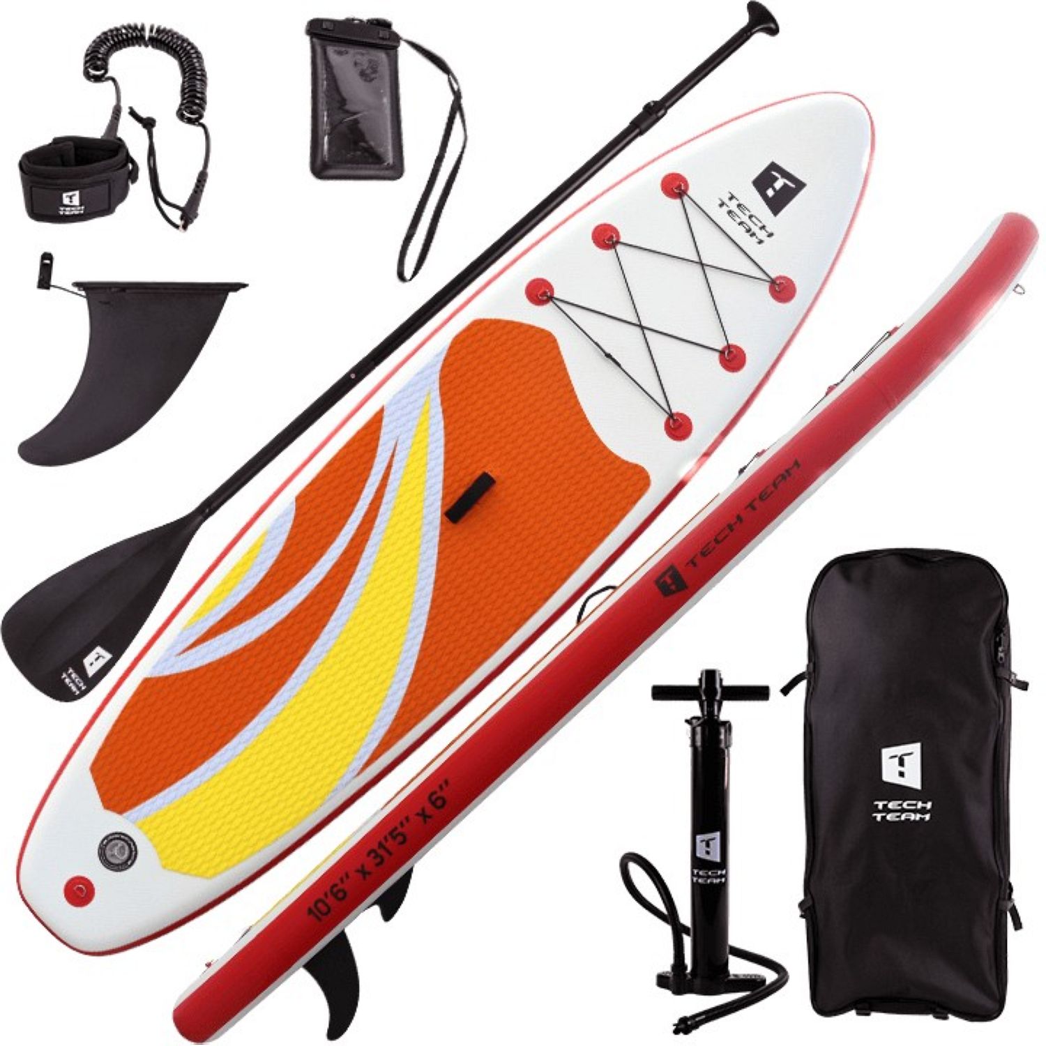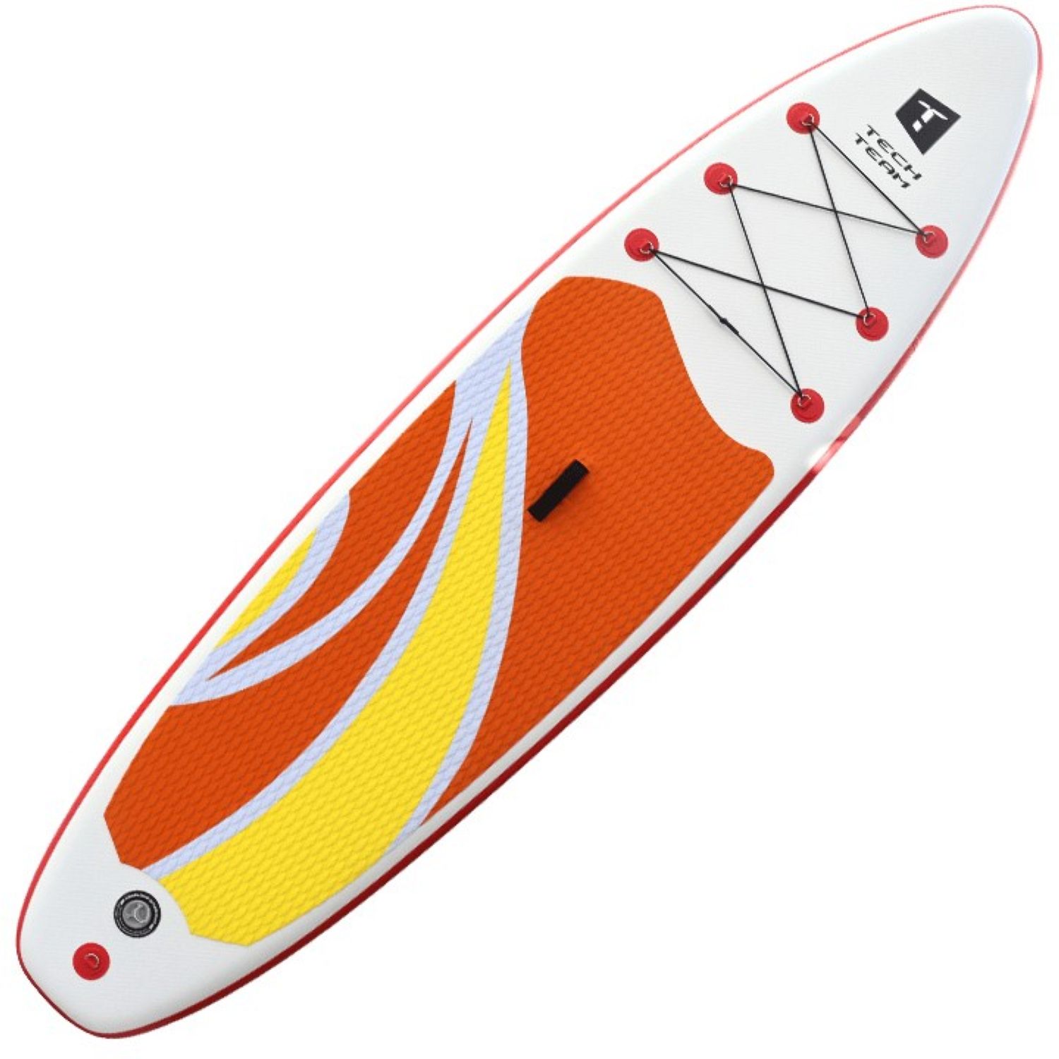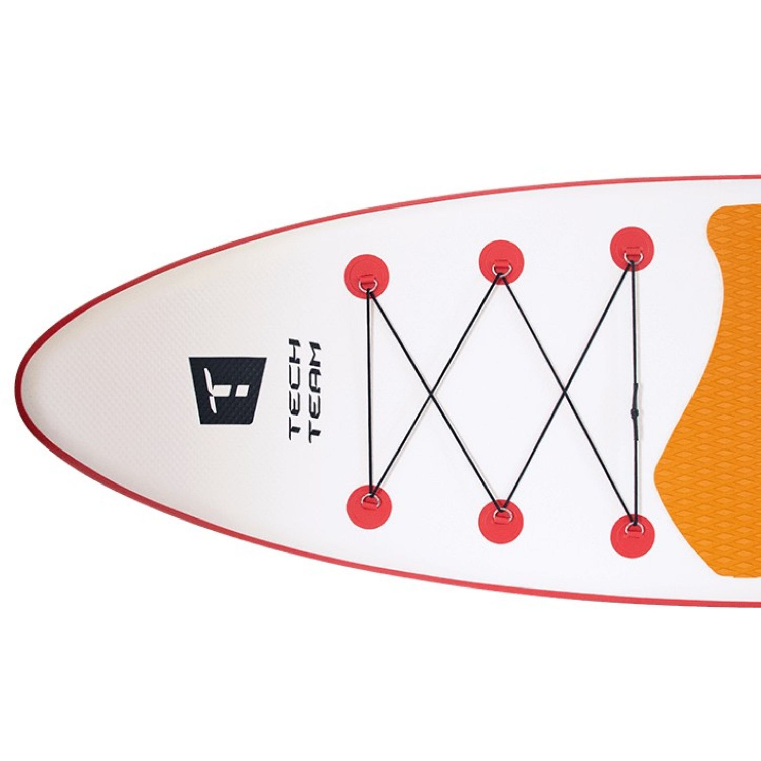 Шеститочечная карго-система (багажник) в носовой части надежно удержит груз на волнах. В передней нижней части доски размещено дополнительное D-кольцо, позволяющее швартовать его у берега или выполнять буксировку по воде. Насос двойного действия позволит быстро и компактно собрать сапборд в рюкзак после отдыха.