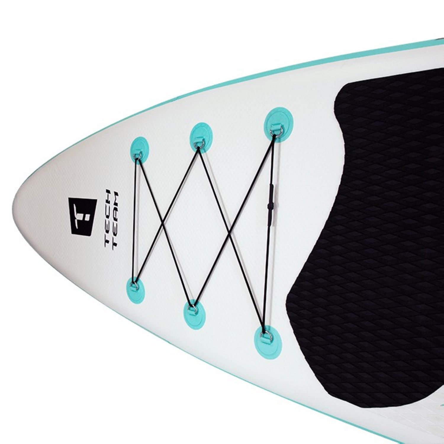 Шеститочечная карго-система (багажник) в носовой части надежно удержит груз на волнах. В передней нижней части доски размещено дополнительное D-кольцо, позволяющее швартовать его у берега или выполнять буксировку по воде. Насос двойного действия позволит быстро и компактно собрать сапборд в рюкзак после отдыха.