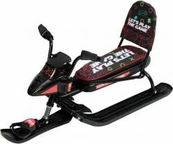 Снегокат оснащён удлинённым мягким сиденьем, которое обеспечивает комфорт даже во время длительных катаний. Велоруль с защитой для рук гарантирует безопасность и удобство управления, а складная спинка позволяет регулировать положение для максимального комфорта. Ремень безопасности обеспечивает дополнительную защиту, а буксировочный трос с автоматической намоткой делает транспортировку снегоката простой и удобной.
