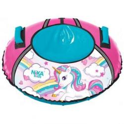 Диаметр тюбинга в накачанном виде составляет 85 см, этот размер позволяет кататься на нём детям ростом до 110 см. Тюбинг выдерживает вес до 50 кг.