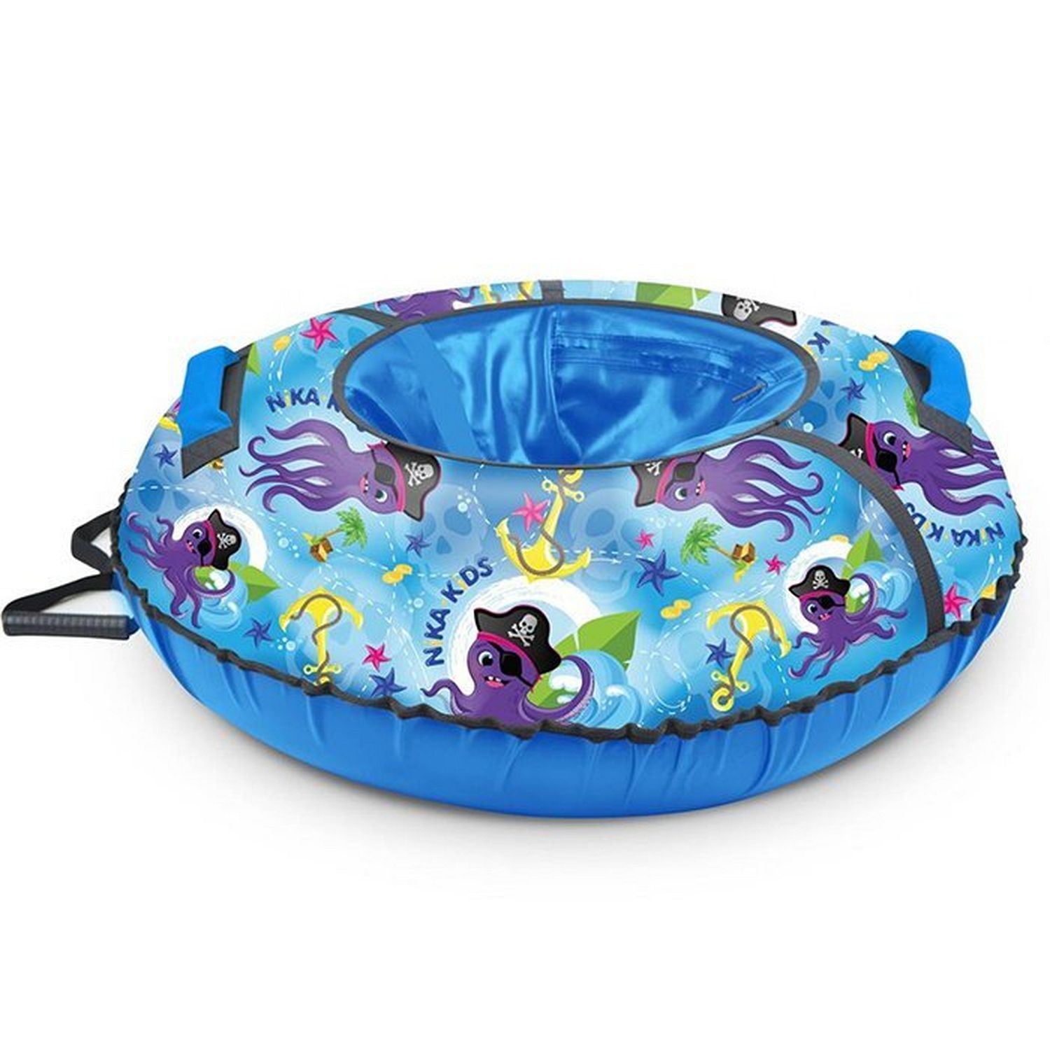 Тюбинг – это современный аналог санок. Тюбинг изготовлен из качественной, водонепроницаемой ткани. Небольшой вес изделия позволяет ребенку легко переносить надувной круг. Красочный дизайн с принтом веселыми осьминогами однозначно понравится вашему малышу!